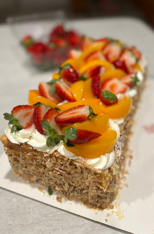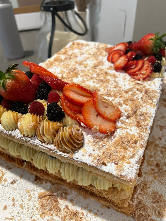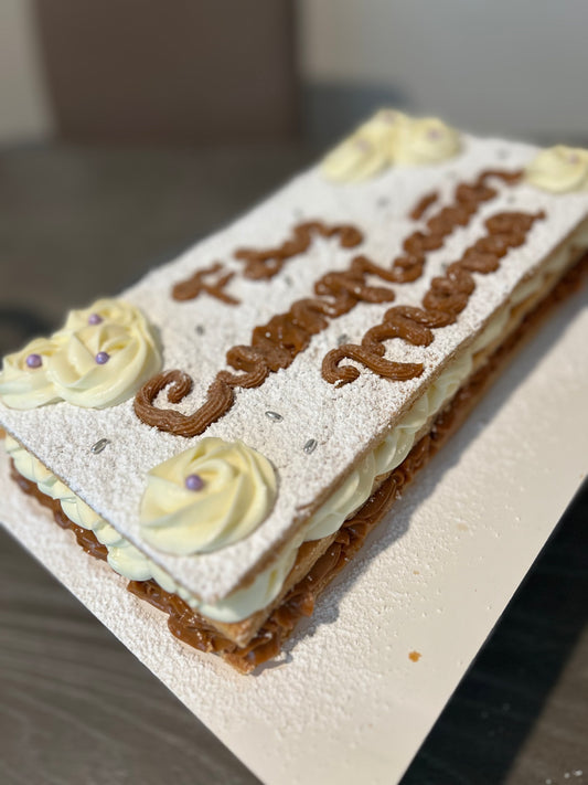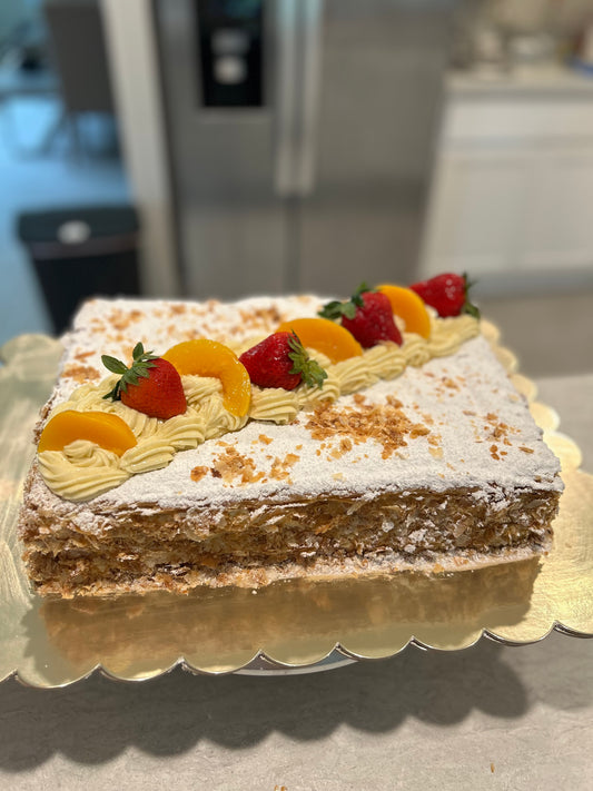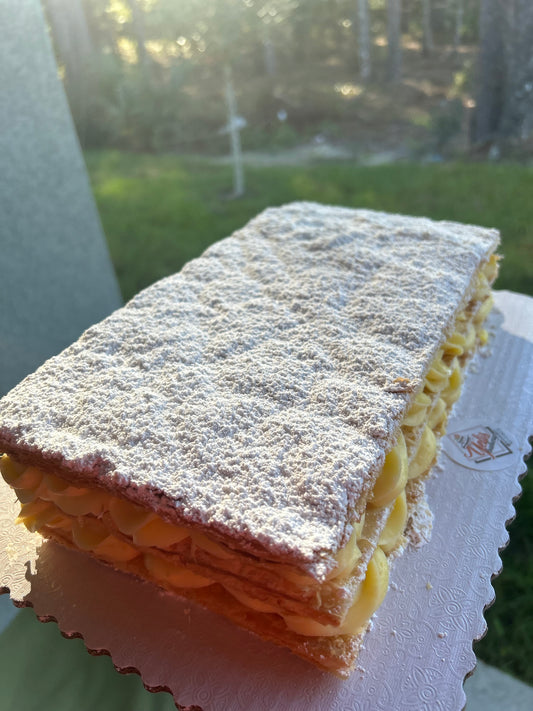 Saboree las exquisitas capas de nuestros pasteles Napoleón, un manjar atemporal que combina hojaldre, deliciosas natillas y delicada crema. Con cada bocado, experimente la perfecta armonía de texturas y sabores, elaborados con precisión y pasión. Ya sea que se disfruten como un postre exquisito o como un delicioso capricho, nuestros pasteles Napoleón prometen elevar cada momento con un toque de sofisticación y felicidad.