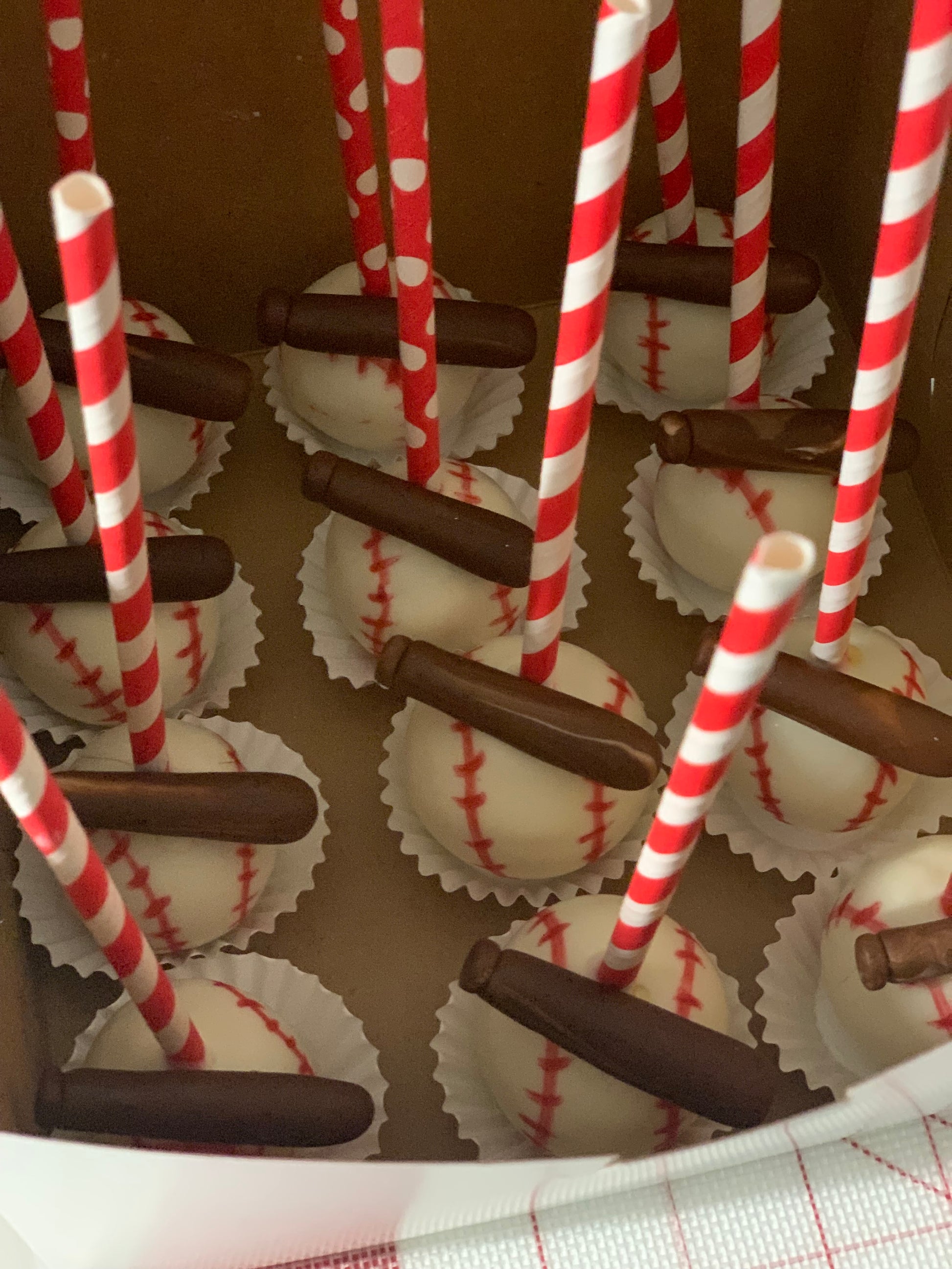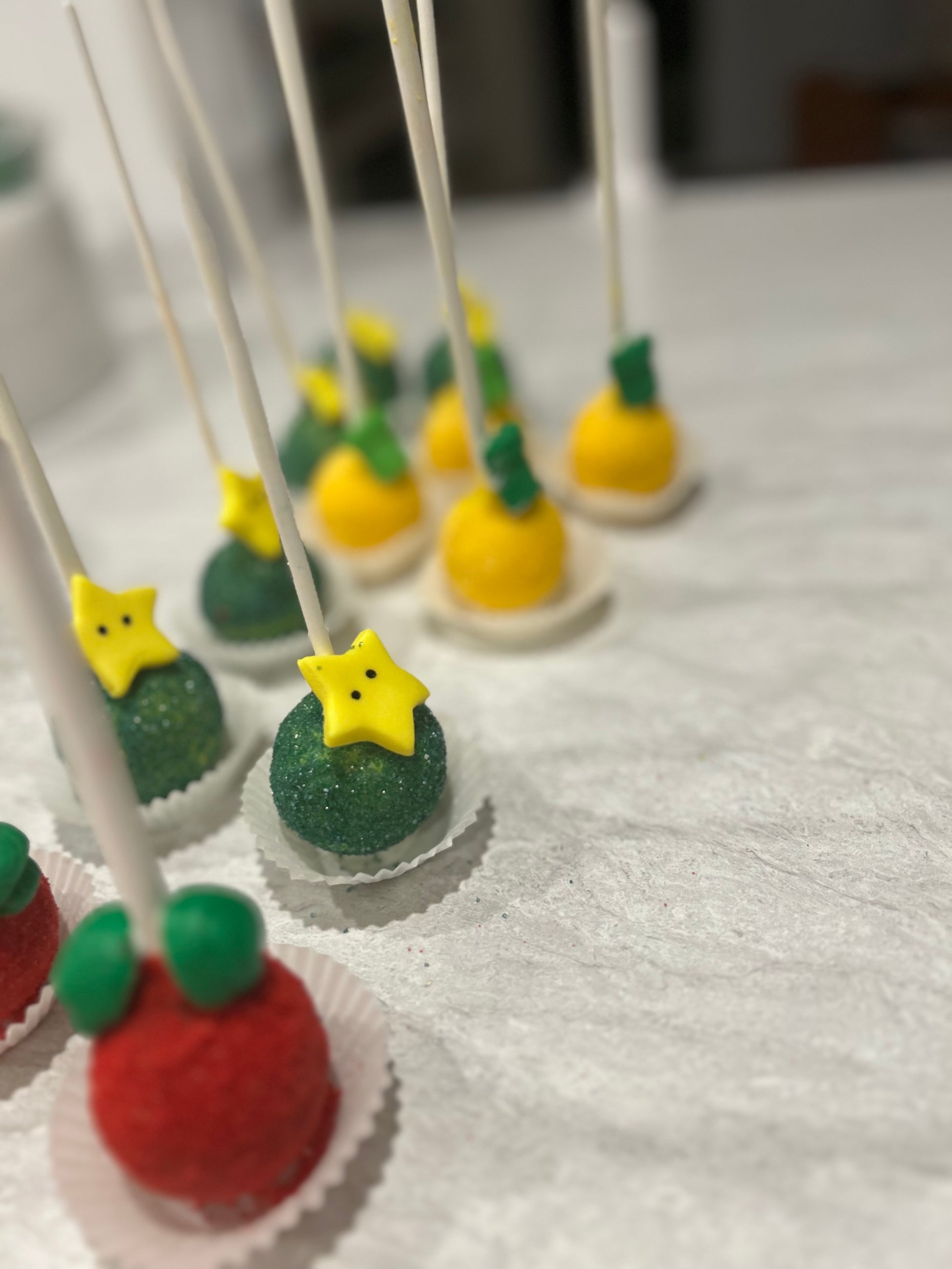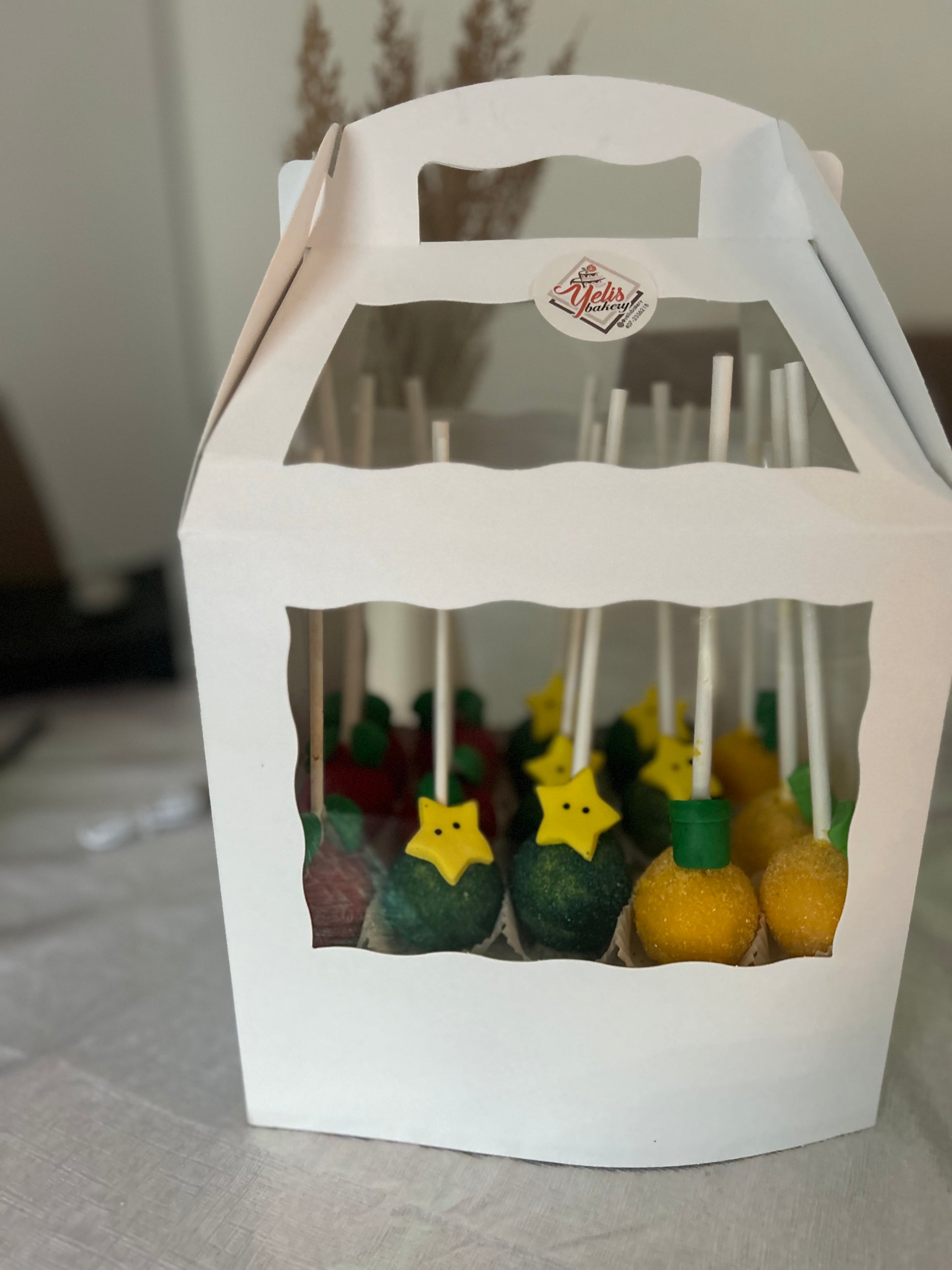 Bolitas sabor vainilla rellenas de dulce de leche de vainilla cubiertas con ganache de chocolate.